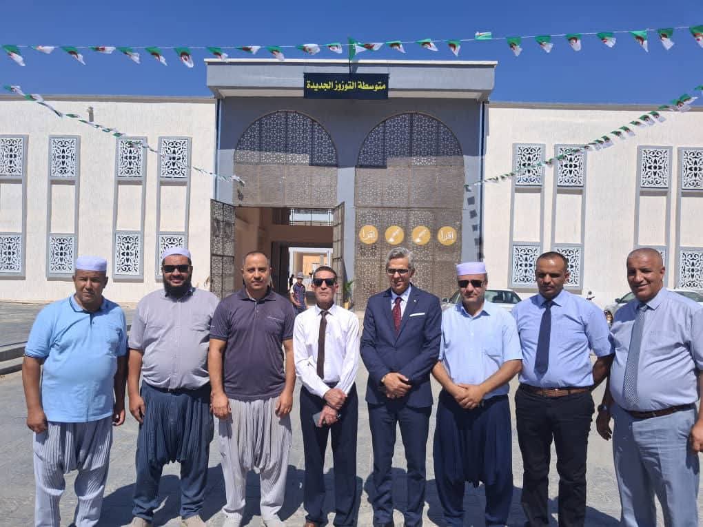 أشرف والي ولاية غرداية، السيد عبد الله أبي نوار، رفقة الوفد الرسمي، على تدشين متوسطة التوزوز ببلدية غرداية في ختام برنامج انطلاق الموسم الدراسي الجديد 2025/2026.