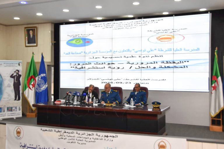احتضنت المدرسة العليا للشرطة “علي تونسي” يوم الثلاثاء 23 سبتمبر 2025، ندوة علمية بعنوان: “اليقظة المرورية – حوادث الطرقات: المشكلة والحل/ رؤية استشرافية”، من تنظيم مديرية التكوين بالمديرية العامة للأمن الوطني، وبالشراكة مع “المؤسسة الجزائرية صناعة الغد” برئاسة السيد بشير مصيطفى.